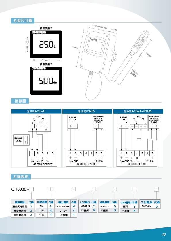 GR8000數位出線型溫溼度偵測--數位出線式溫溼度傳訊器