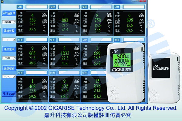 • 經由RS-485通信系統溫溼度及氣體具有視覺可補偏差值之功能