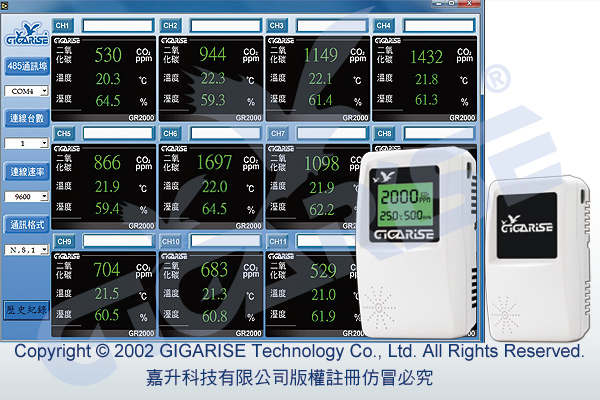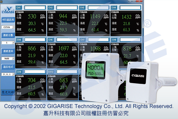 • 經由RS-485通信系統溫溼度及氣體具有視覺可補偏差值之功能